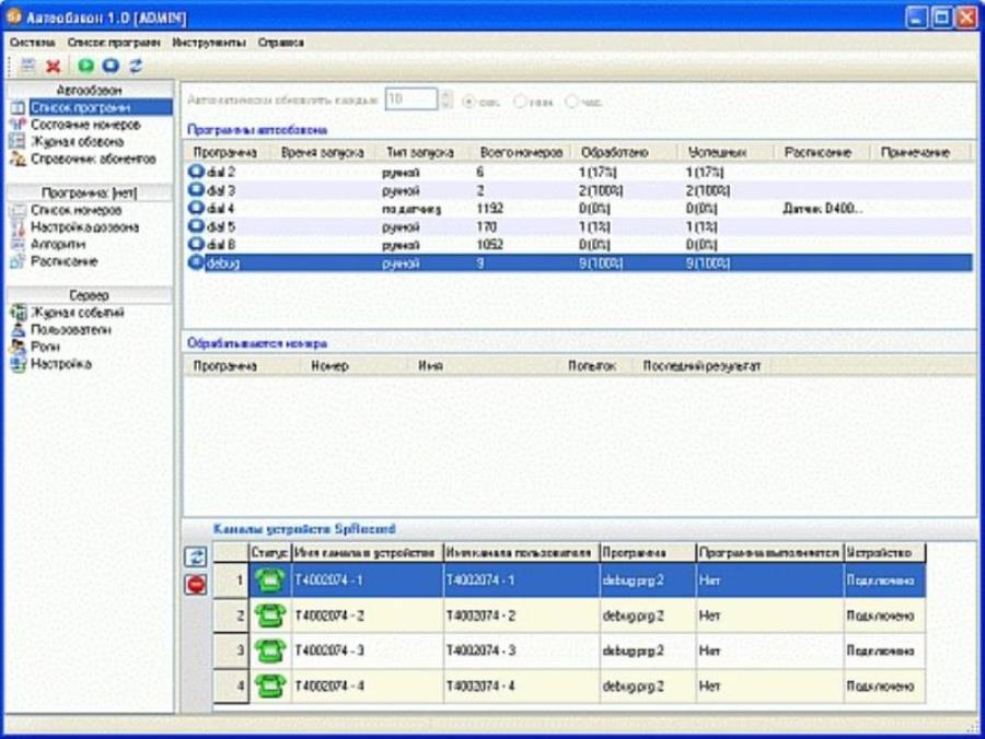 SpRecord аналоговый канал Автообзвона SpRobot