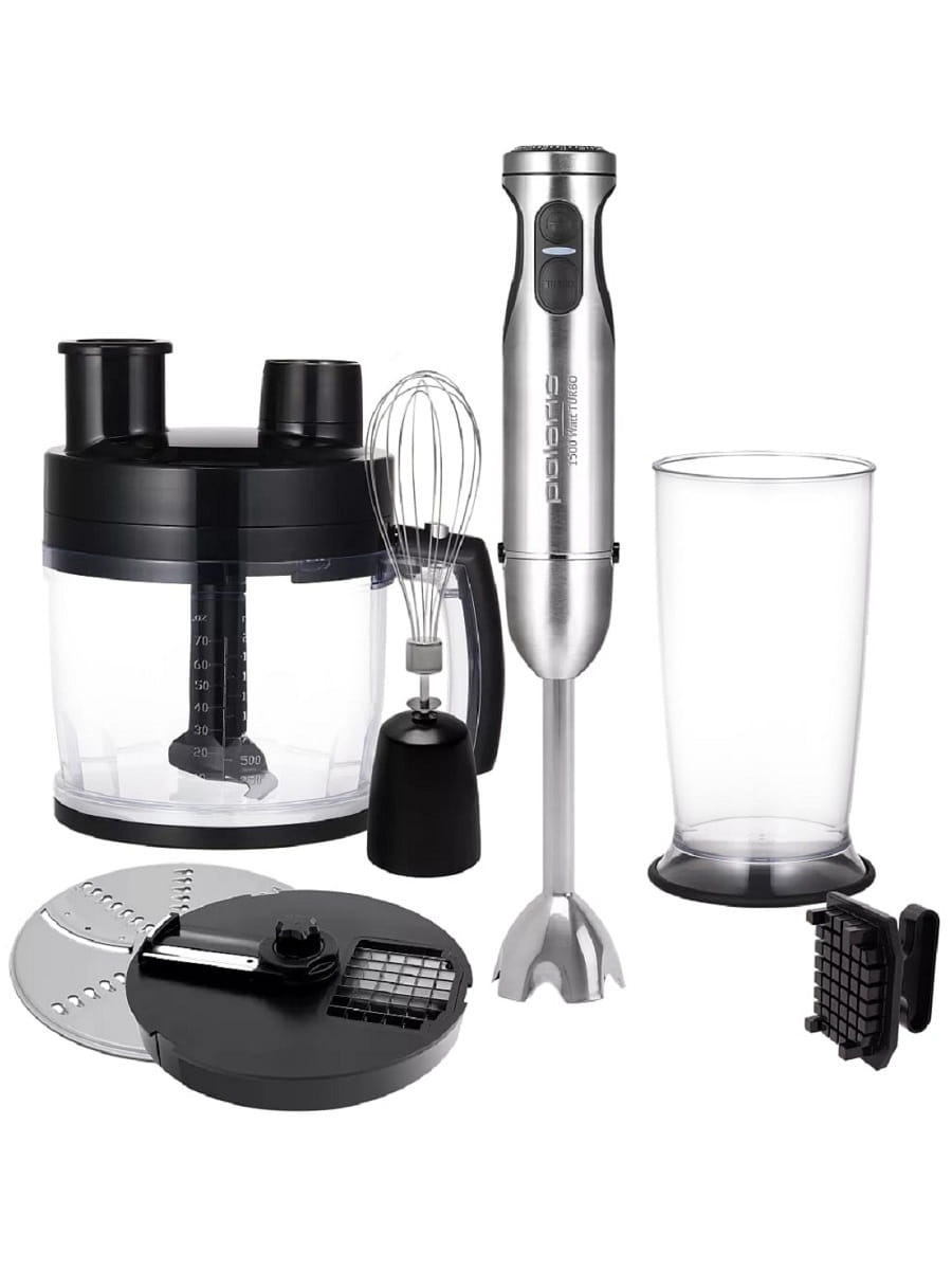 Погружной блендер Polaris PHB 1528AL CUBE – это многофункциональный прибор 5 в 1: блендер, миксер, измельчитель, насадка для резки кубиками, диск для нарезки ломтиками/шинковки.