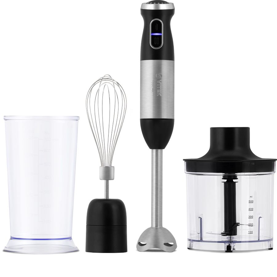 Если для приготовления блюда необходимо измельчить ингредиенты, воспользуйтесь погружным блендером VITEK VT-8540 с максимальной мощностью 1000 Вт. Погружная часть и лезвия прибора изготовлены из высококачественной нержавеющей стали, гарантирующей ему долгий срок службы. Что особенно приятно, скорость работы блендера регулируется плавно, без рывков. Для особенно быстрого и мощного измельчения продуктов в нем также предусмотрен режим TURBO. В комплекте с блендером — чаша объемом 500 мл, а также стакан для смешивания объемом 700 мл и насадка-венчик для взбивания.