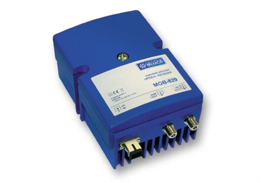Оптический приемник Telkom TELMOR, модель MOB-829, - оборудование, позволяющее обеспечить высокую эффективность работы сети кабельного ТВ на участке преобразования оптического сигнала в электрический высокочастотный сигнал. Приборы модельной линии MOB-x29 предназначены специально для сетей, имеющих архитектуру FTTх, они не нуждаются в дополнительных усилителях, и обладают возможностью плавной регулировки усиления, а также стандартными вставками JXP, обеспечивающими дискретную регулировку наклона АЧХ.