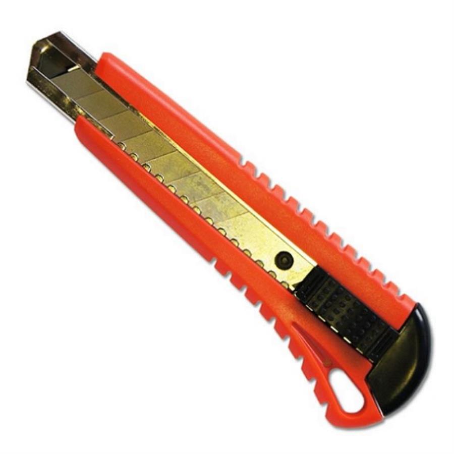 Нож изготовлен из пластика, усиленного металлической направляющей. Отламывающееся лезвие с пластиковым прижимом. Размер лезвия 18 мм. Предназначен для разрезания бумаги, картона и прочих материалов с применением небольших усилий. Замена лезвия осуществляется через хвостовую часть ножа.
