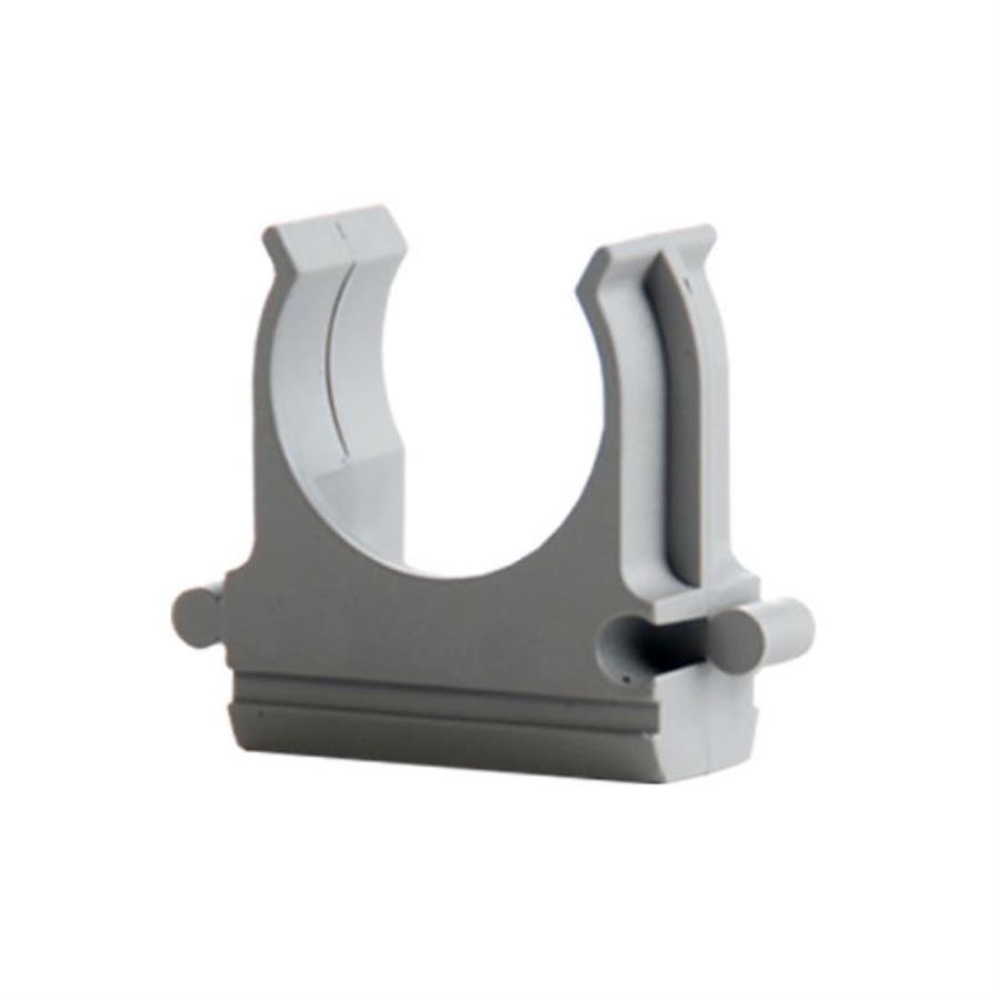 Клипса-крепеж для гофры-трубы d16. Ребра жесткости обеспечивают надёжный захват трубы и достаточную жёсткость удержания в течении длительного времени. Качественный пластик и прочностные рёбра жесткости не дают ломаться зажиму на холоде и слабнуть на жаре.