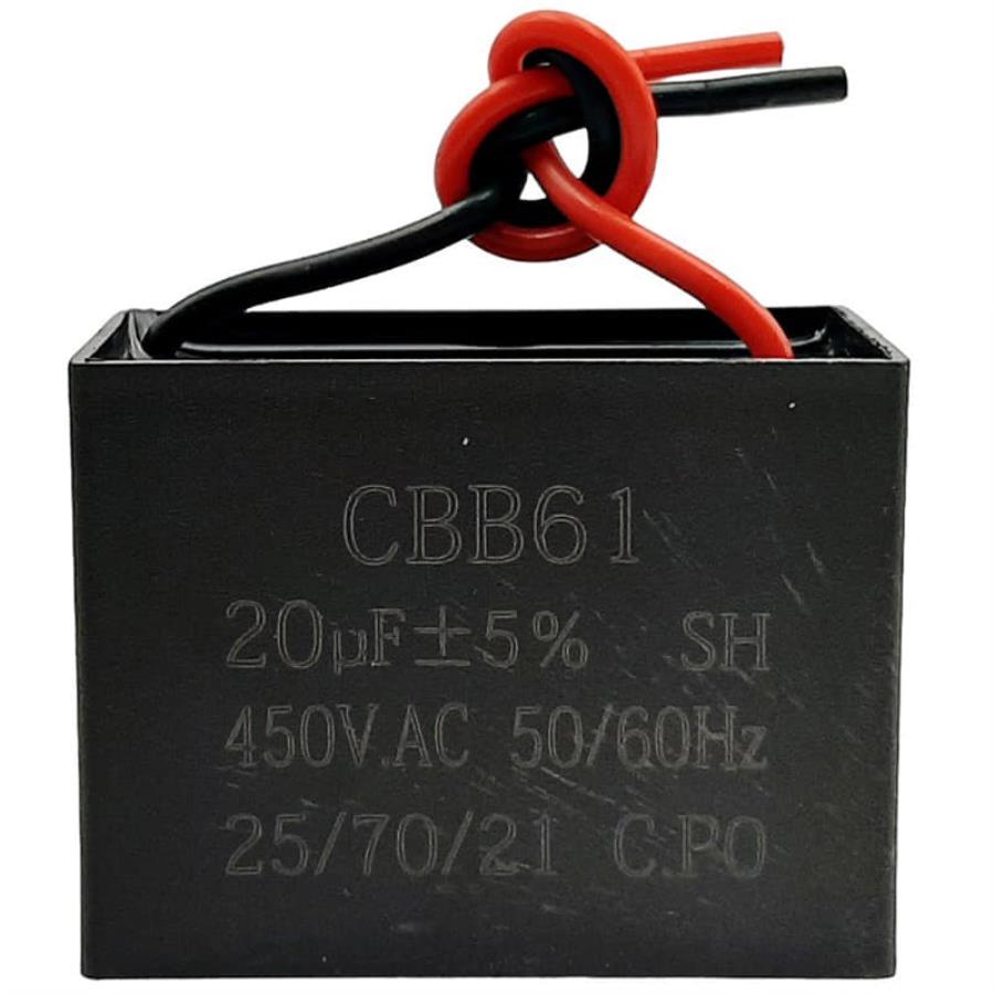 Пусковой конденсатор CBB61 20мкф, 450В гибкие выводы для электродвигателей. Прямоугольный, пластиковый корпус