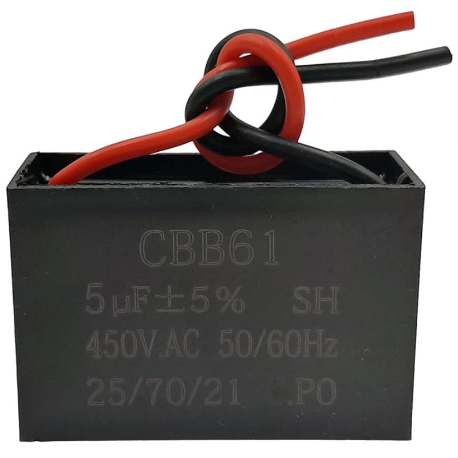 Пусковой конденсатор CBB61 5мкф, 450В гибкие выводы для электродвигателей. Прямоугольный, пластиковый корпус